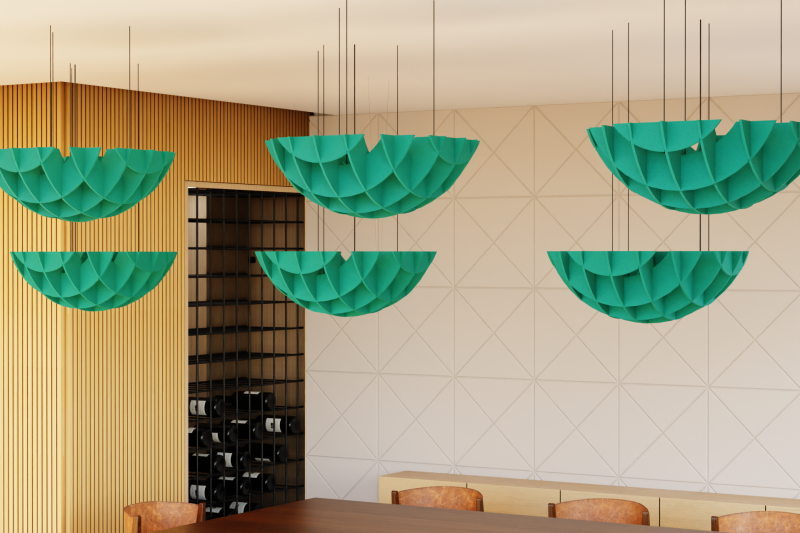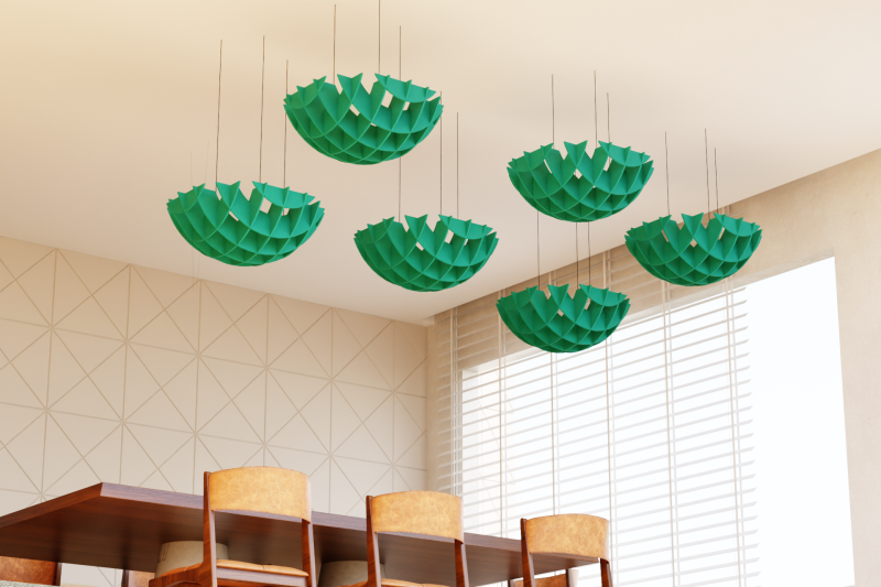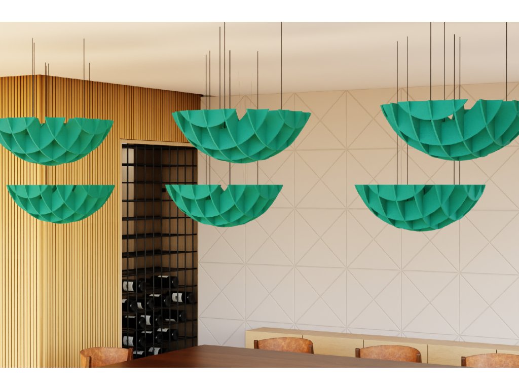 Akustický stropní Hemisphere model z PET plsti – neotřelý design a akustická účinnost pro váš interiér