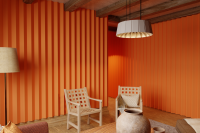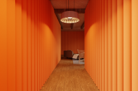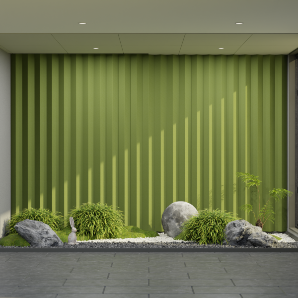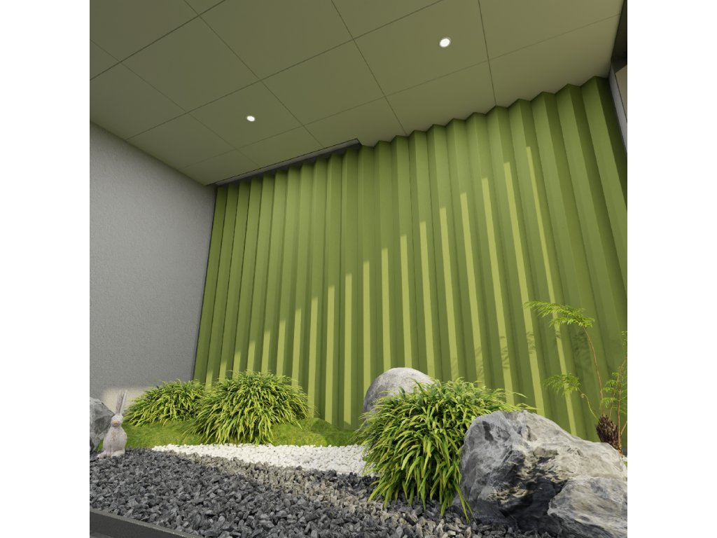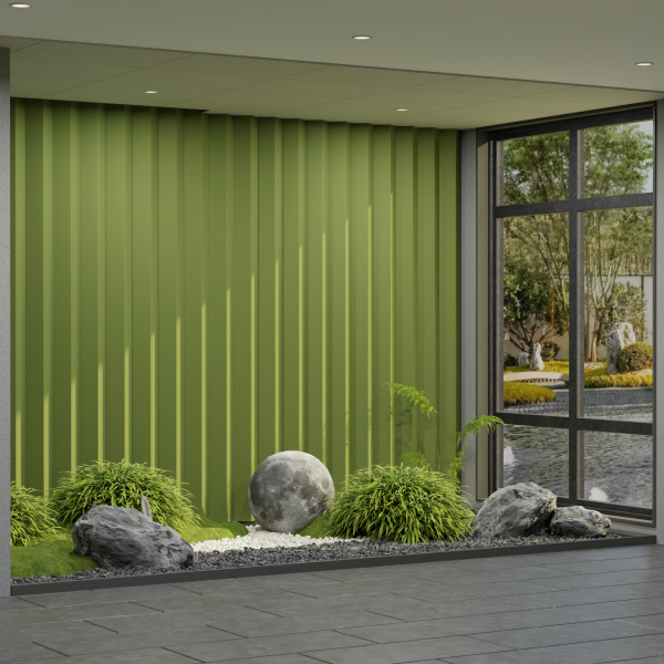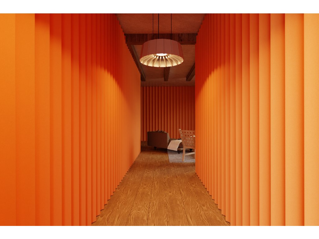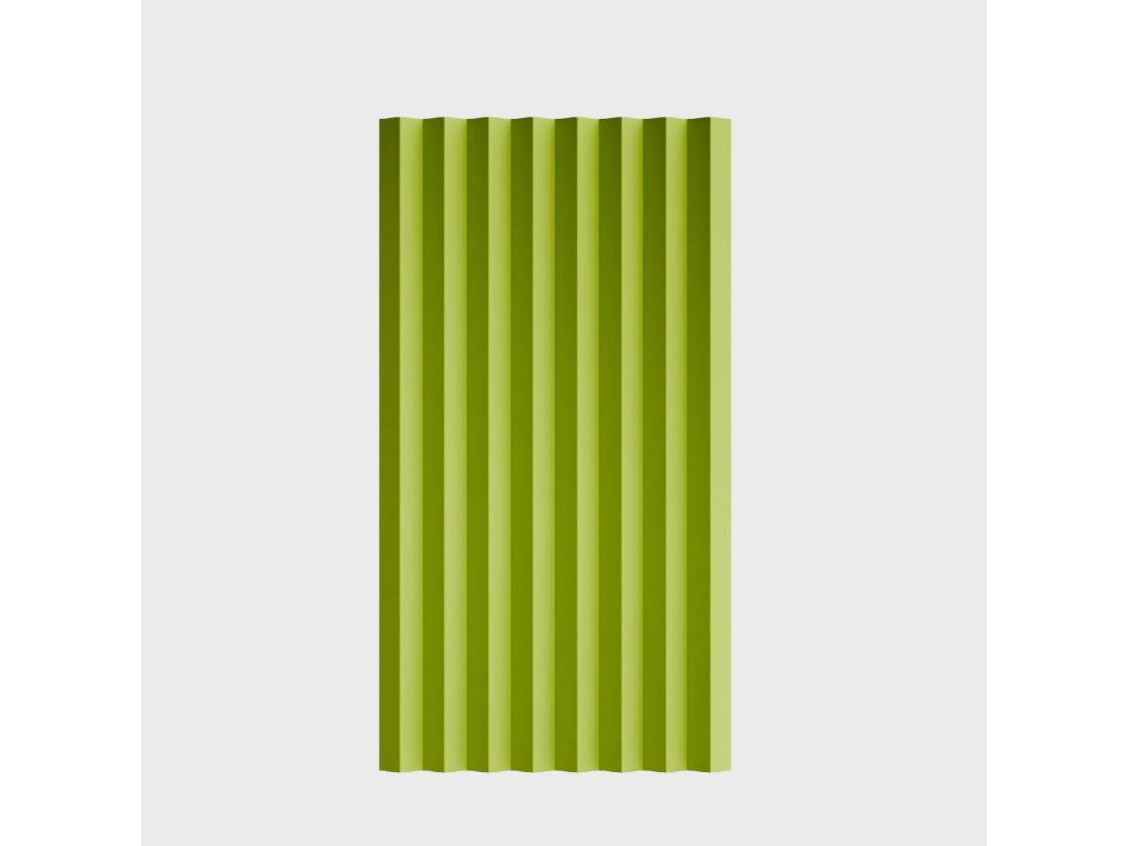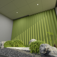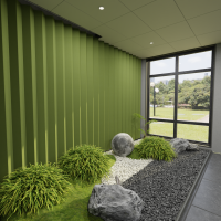 Díky laťové konstrukci a trojúhelníkovému profilu vytváří AcouSlat Delta rytmickou strukturu, která pracuje se světlem a stínem a dodává interiéru hloubku. Při instalaci více panelů vedle sebe vznikají elegantní akustické obklady s jednotným vizuálním stylem.
